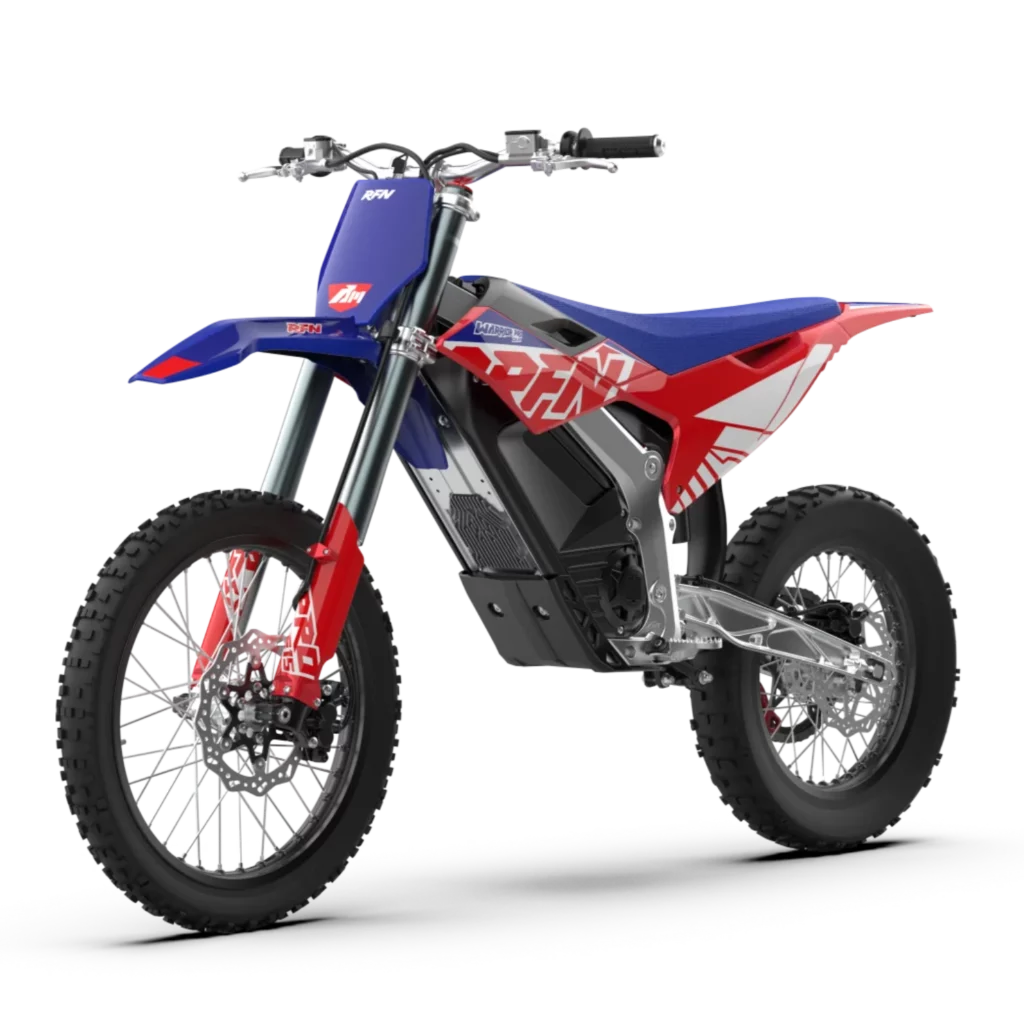 Animée par un système de propulsion électrique à flux axial conçu pour l’off-road, la moto délivre une puissance immédiate et régulière. La transmission mono-étage améliore le rendement et libère jusqu’à 560 Nm de couple à la roue arrière pour des relances franches et une excellente motricité. Refroidissement précis et protections renforcées assurent un comportement stable, même à forte charge.